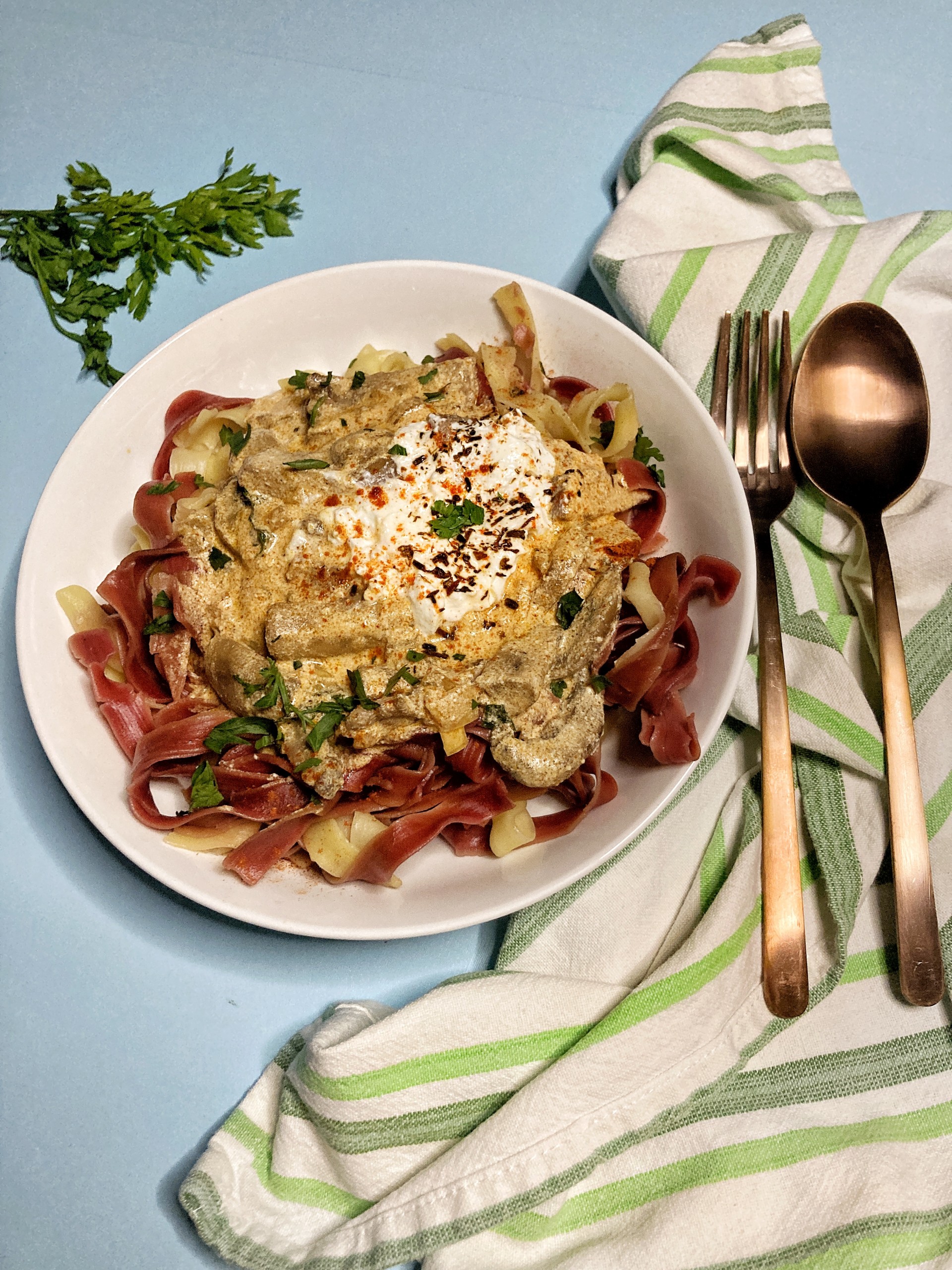 u sosu sa pečurkama i taljatelama sa aromom cvekle
